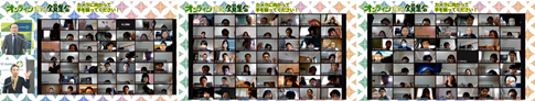 途中、実験企画で「オンラインだヨ!全員集合」と題して全員のギャラリービューを配信しました。当日の出席者約650名のカメラ映像がずらり!