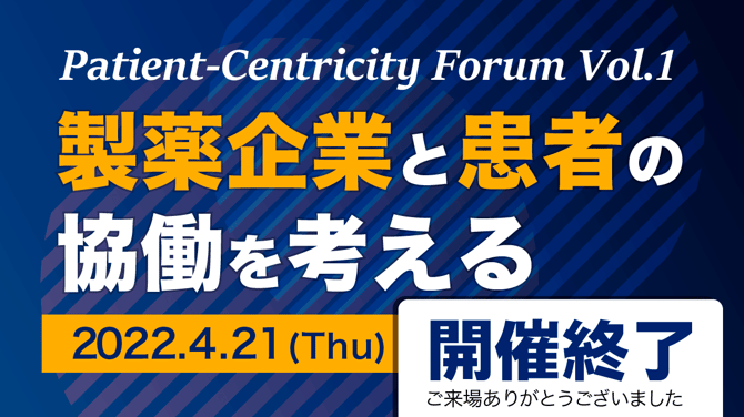 製薬業界では、”Patient-Centricity”と謳われ、患者中心の医療の実現に向けた様々な取り組みが注目されています。しかしながら、その一方で、企業側は患者のニーズをどのように効率的に入手し、アンメットメディカルニーズを同定すべきか手探りの状況が続いています。患者側は何を考え、何を期待しているのか、また、企業側は、患者のために何をすべきなのでしょうか。この問題における解決の糸口を見つけるため、我々はこのたびPatient-Centricity Forumを立ち上げました。今回は、その記念すべき第1回のセミナーとなります。ご参加いただく皆様方もこの問題に積極的に取り組み活発なディスカッションができますようシリーズでセミナーを開催させていただきます。